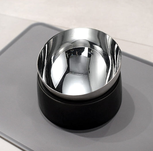 Tilted Stainless Steel Cat Bowl With Black Stand